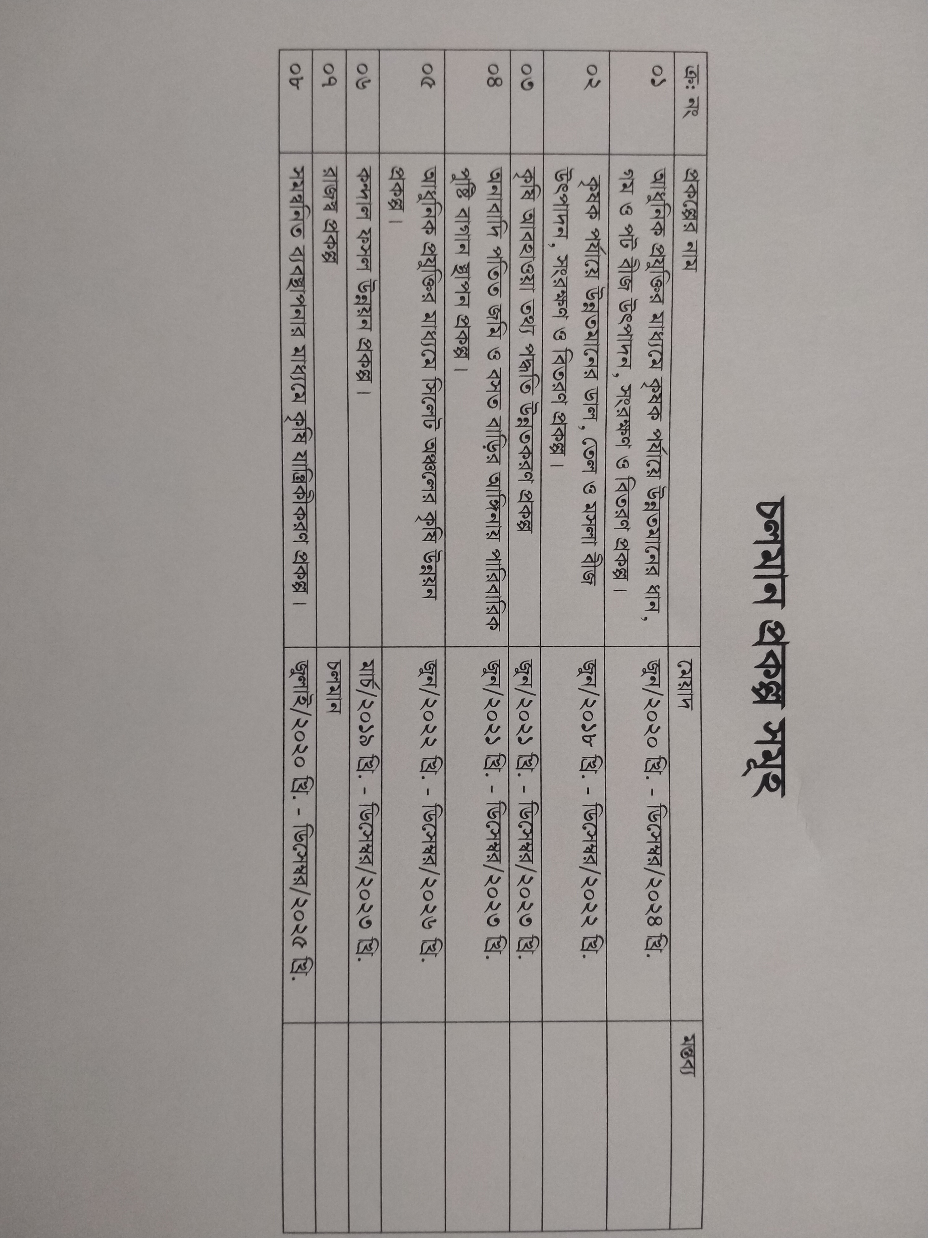 ১। চাষী পর্যায়ে উন্নতমানের ধান,গম ও পাট বীজ উৎপাদন, সংরক্ষণ ও বিতরণ প্রকল্পঃ